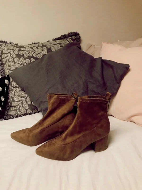 The moment that I (all of my friends that see me wearing the same beat up black suede booties) have been waiting for!! My brand new faux leather booties that I got for only 18$!! I am so excited to sport these on the streets of Boston :)